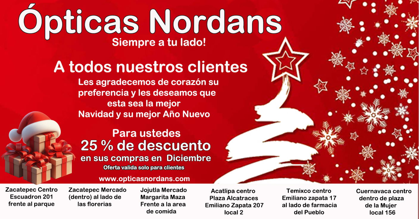 Ópticas Nordans Zacatepec se enorgullece de ofrecer servicios ópticos de alta calidad, brindando soluciones personalizadas para el cuidado visual de nuestra comunidad. Situada convenientemente al lado de la papelería El Paraíso, nuestra sucursal combina profesionalismo y calidez para garantizar una experiencia de primera categoría. Visitarnos es el primer paso para restaurar y mantener la salud visual.